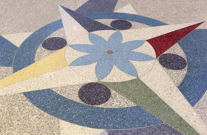 Terrazzo was originally created in Italy over 500 hundred years ago by Venetian workers searching for a way to use discarded marble remnants – making it one of the world’s first “green” flooring systems! In keeping with its original premise of recycle/reuse, today’s terrazzo installations combine exceptional beauty, extreme design flexibility, durability to last the life of the building, and incredible ease of maintenance with the best practices of sustainable building.